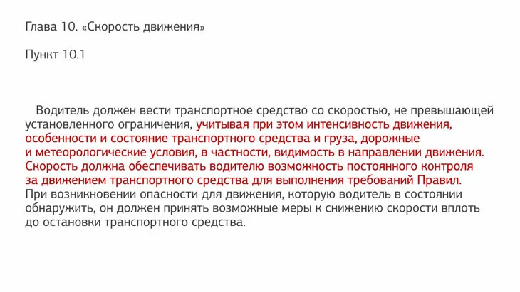 В данном разделе правил, мы подробно поговорим о том, какую скорость должен выбирать водитель, помимо строгих ограничений, а также, очень важный момент, касающийся предотвращения дорожно-транспортного происшествия. В данном пункте говорится о том, что водитель обязан сделать, чтобы предотвратить ДТП, мы здесь поговорим о виновности того или иного участника ДТП в случае выполнения или невыполнения данного пункта.