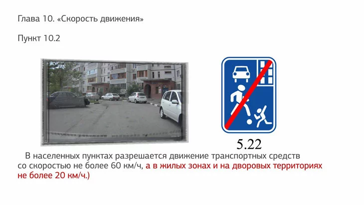 В данном разделе подробно рассмотрим, что такое жилая зона и дворовые территории, как на данных участках могут двигаться пешеходы и какой они имеют приоритет. Далее рассмотрим, какие ограничения на водителей накладываются при движении в жилых зонах.