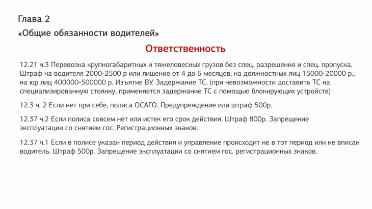 Рассмотрим ответственность за управление автомобилем без страховки ОСАГО (там 3 вида нарушений может быть).
