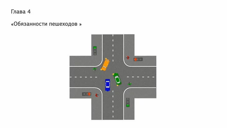 Благодаря визуальным схемам данного урока, Вы без проблем поймете и запомните обязанности пешеходов, что позволит Вам безопасно и без раздумий определять, в каких местах Вы должны уступать дорогу пешеходам, а в каких, не стоит вводить путаницу на дороге, чтобы не попасть в аварию с другими транспортными средствами. Также, данные знания позволят Вам не получать штрафы за не предоставление преимущества пешеходам.