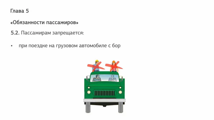 В этом уроке благодаря наглядному материалу, разберем с какой стороны от транспортного средства и при каких обстоятельствах пассажиры могут производить посадку или высадку, а также все остальные обязанности пассажиров. В конце урока, мы рассмотрим, какой штраф предусмотрен для пассажиров, за нарушения данных требований.
