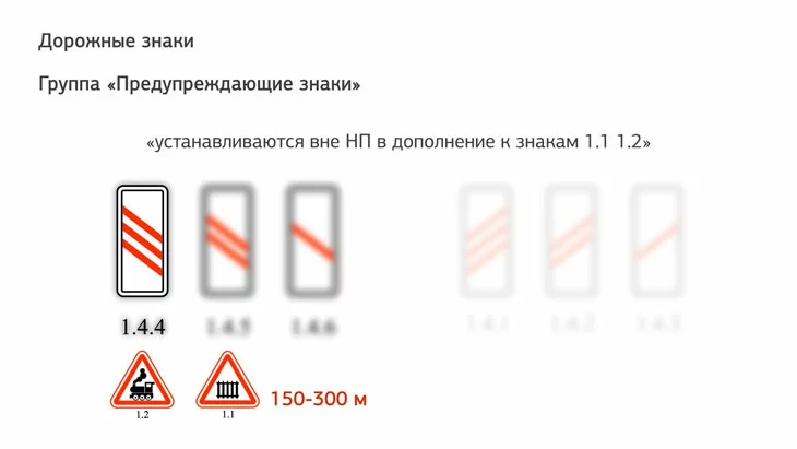 Далее, на наглядных графических объектах рассмотрим существующие строгие ограничения максимальной скорости в различных условиях.