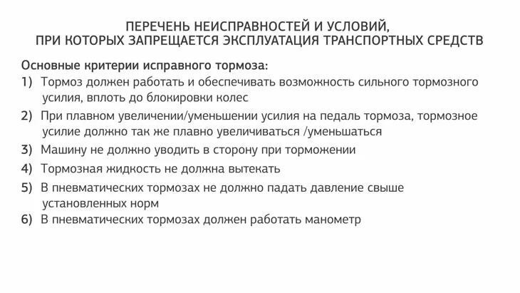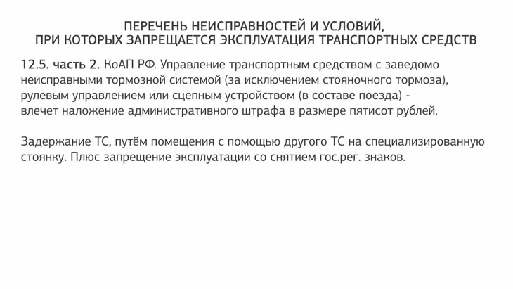 В данном уроке мы поговорим о неисправностях, при которых запрещается эксплуатация. Рассмотрим неисправности, при которых полностью запрещается дальнейшее движение.