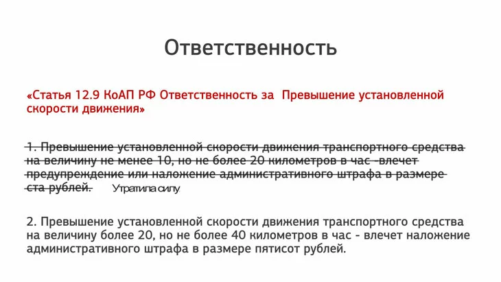 В конце урока поговорим об ответственности, предусмотренной за нарушение скоростного режима.
