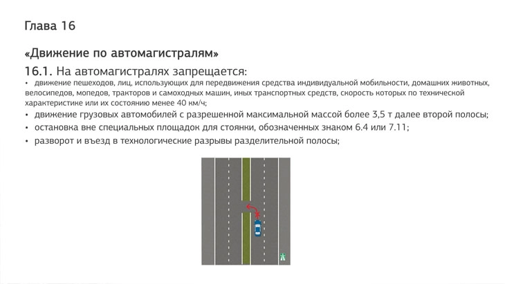 В этом уроке разберемся с ограничениями, которые правила накладывают на движение по автомагистралям. С помощью графических элементов подробно изучим, кому запрещается двигаться по автомагистралям, какие дополнительные ограничения вводятся для грузовиков, где можно производить остановки или стоянку, где нельзя разворачиваться на автомагистрали и другое. Разберем также, действия при вынужденной остановке на автомагистрали.
