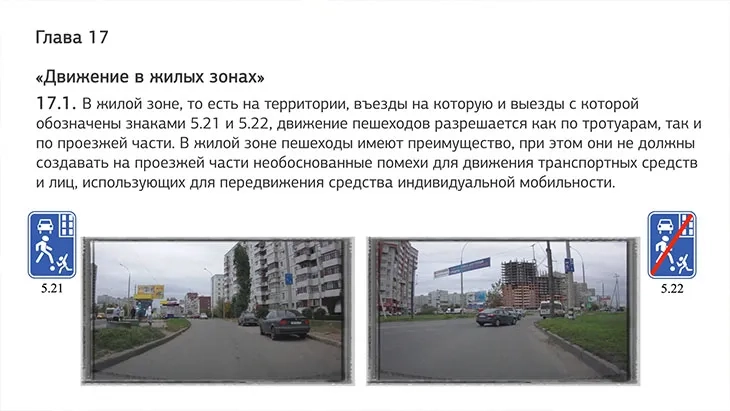 В данном разделе подробно рассмотрим, что такое жилая зона и дворовые территории, как на данных участках могут двигаться пешеходы и какой они имеют приоритет. Далее рассмотрим, какие ограничения на водителей накладываются при движении в жилых зонах.