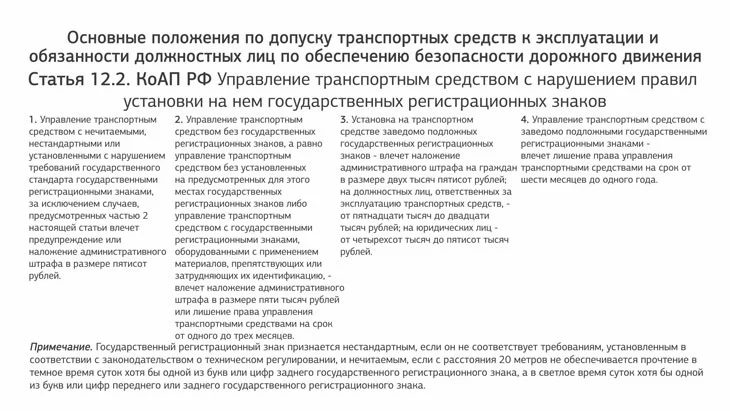 Управление транспортным средством, на котором не установлен по правилам государственный номерной знак. Здесь поговорим об ответственности, в случаях если знак не установлен совсем, установлен с нарушениями или знак невозможно прочитать.